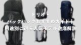 本格的な登山や長距離ハイキングには、アーチフレーム+ベンチレーション構造のザックが最適。重い荷物をしっかりホールドし、背中に風の通り道をつくることで、長時間の行動でも快適さを保てます。